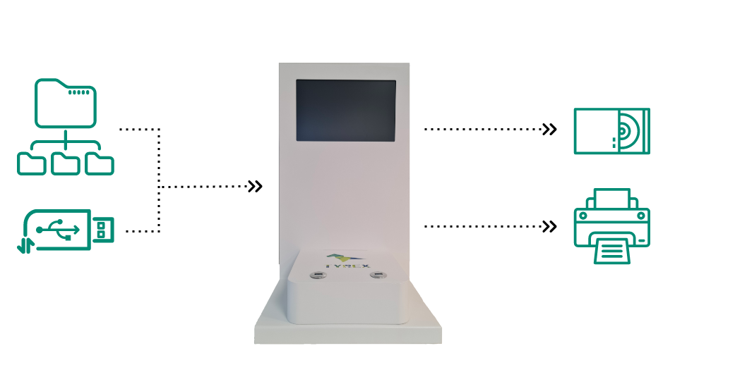 The TYREX delivery station consists of a CONSOLE decontamination station with 2 USB ports, a printer and a CD burner. It performs a complete scan of the data presented as input, using several threat detection solutions, enabling data to be transferred in a highly secure way, so that it can be delivered under the best possible security conditions.