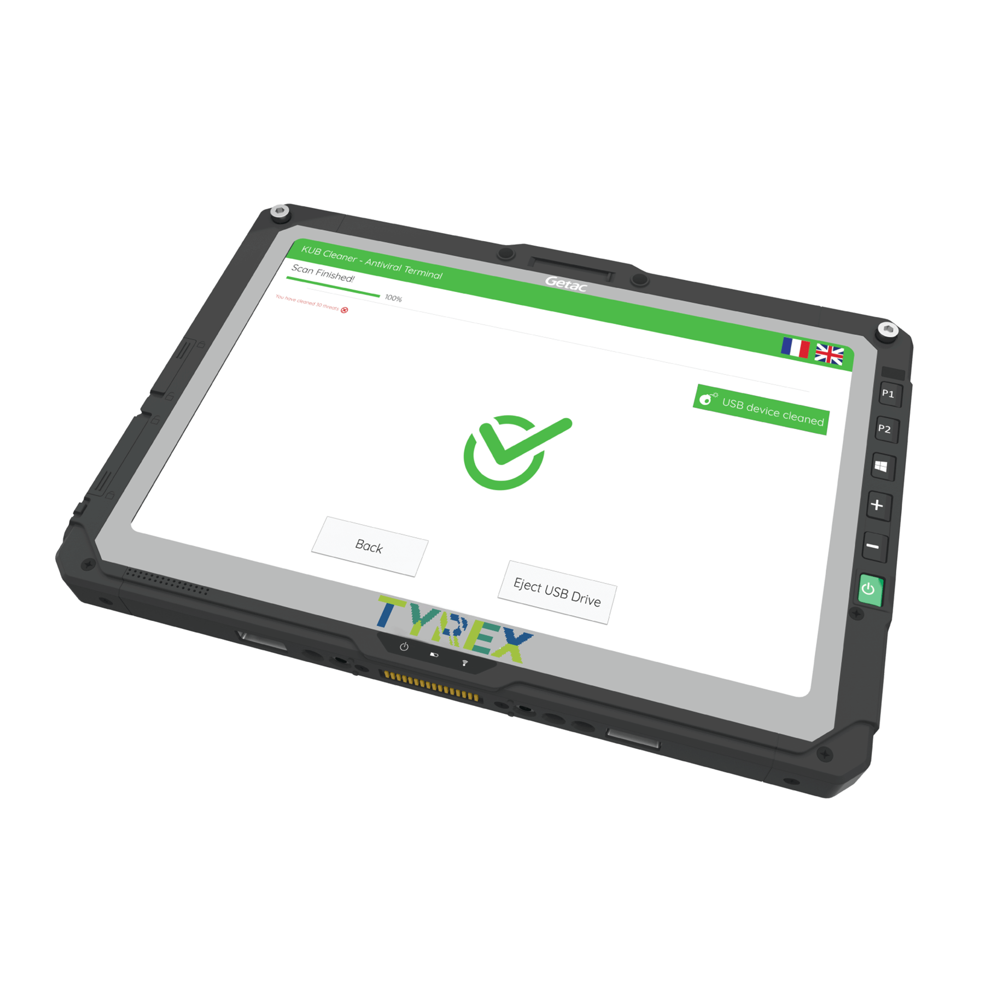 Our K-REX range of advanced USB decontamination kiosks meets all operational security requirements by adapting to different usage contexts, particularly in critical environments. They come with a TYREX management console for centralised administration and supervision.